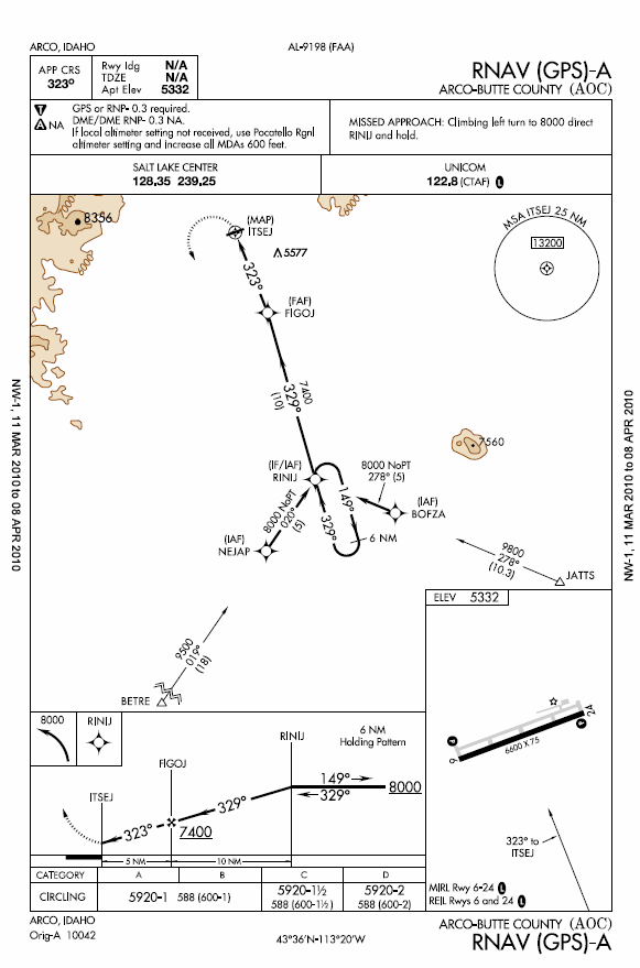 RNAV (GPS) A Approach Plate for Arco-Butte (KAOC)